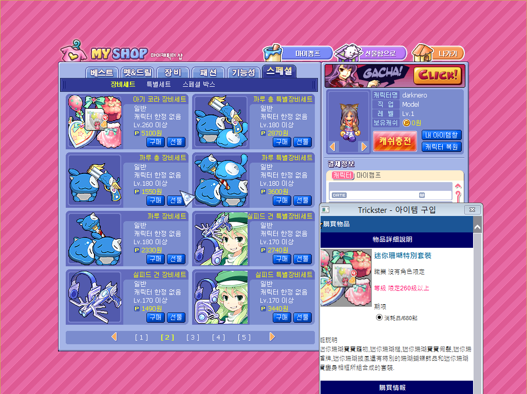 트릭스터 캐시샵 누르면 튕기는데 알려주실분