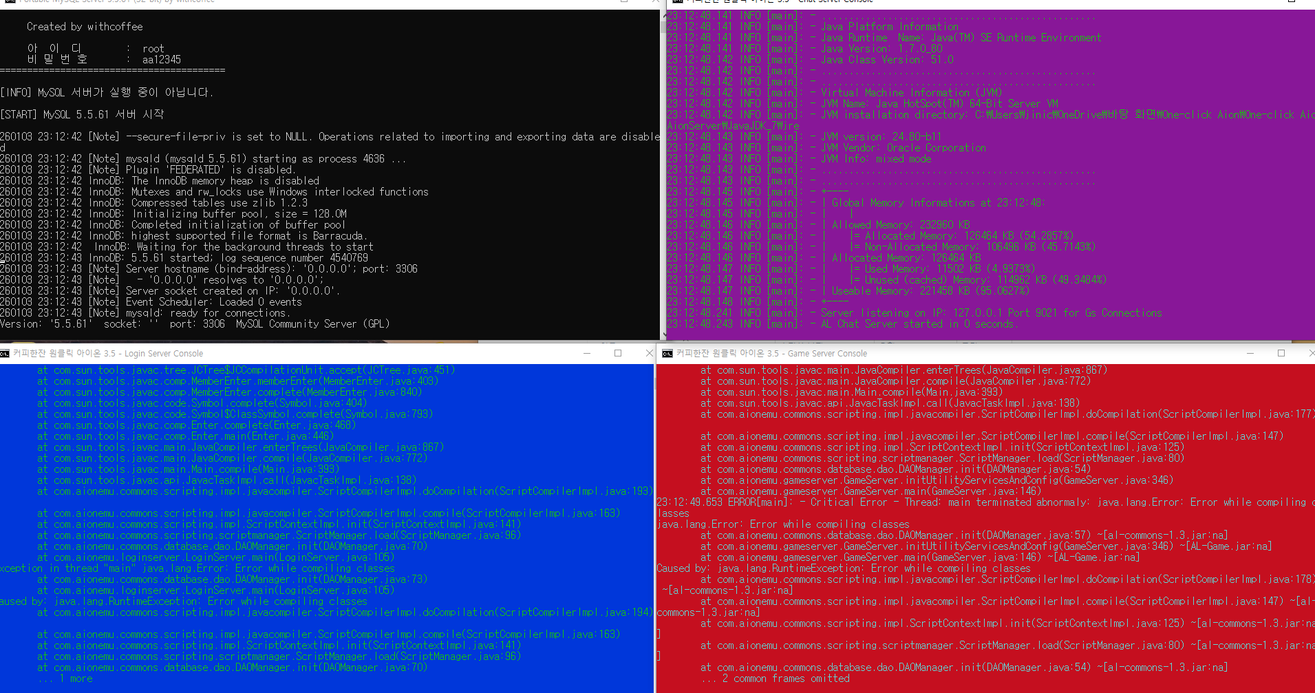 위에 화면처럼 자바 에러라고뜨네여 mysql 중지해논상태구여 원크릭 다른건 만진건없구여