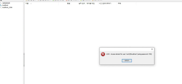 비밀번호 1231 넣었구여 db에 맞게 그런데 1045 오류가 뜨네여..
