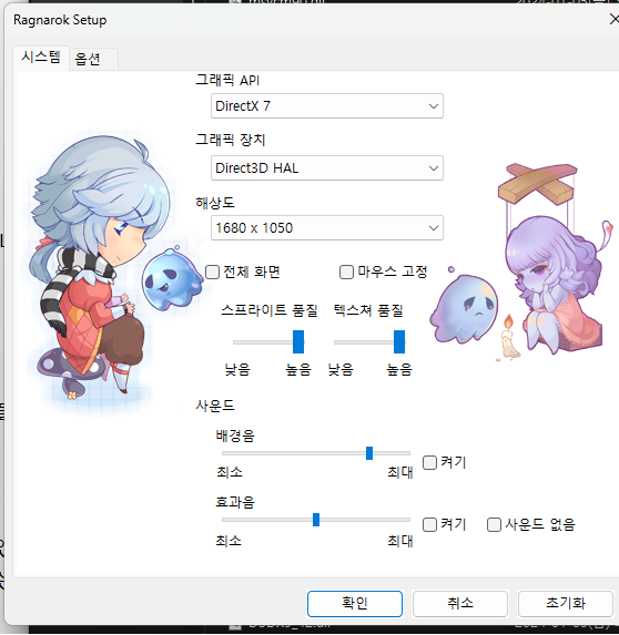 클라 폴더 안에서 조금만 밑으로 내리면 setup.exe 있습니다 해당 파일 실행해서 그래픽 api = directX 7 , 그래픽장치 HAL 로 바꾸고 확인 후