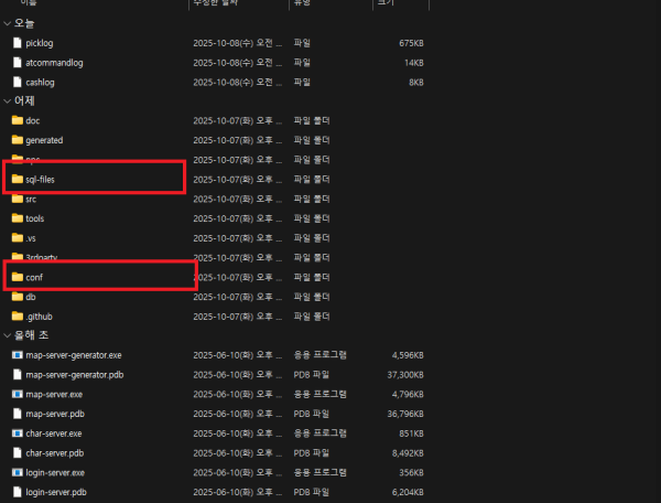 설정이 필요한 폴더들은 sql-files , conf 폴더입니다
