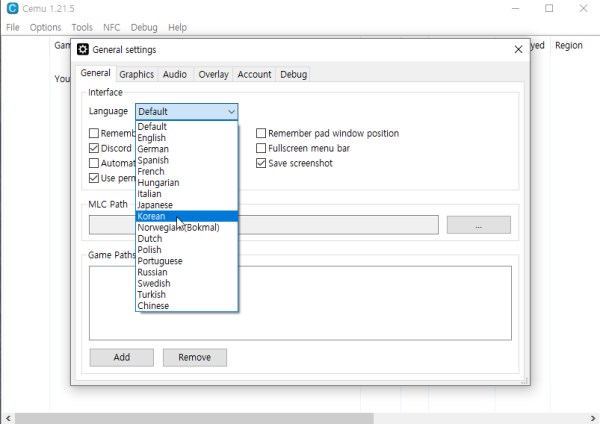 cemu 위유 한국어 변경 방법