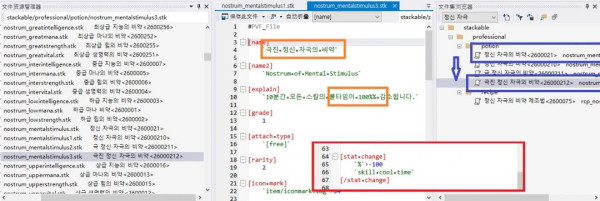pvfUtility 로 돌아가서 stackable 폴더 아래로 쭉 내리면 stackable.lst 파일이 을 오픈후